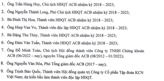 Ba ứng viên BKS nhiệm kỳ mới đều là ba thành viên BKS đương nhiệm: ông Huỳnh Nghĩa Hiệp, bà Nguyễn Thị Minh Lan và bà Hoàng Ngân.