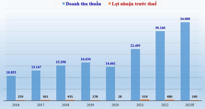 Năm 2023 - doanh thu tăng 13%, đạt 34.000 tỷ đồng