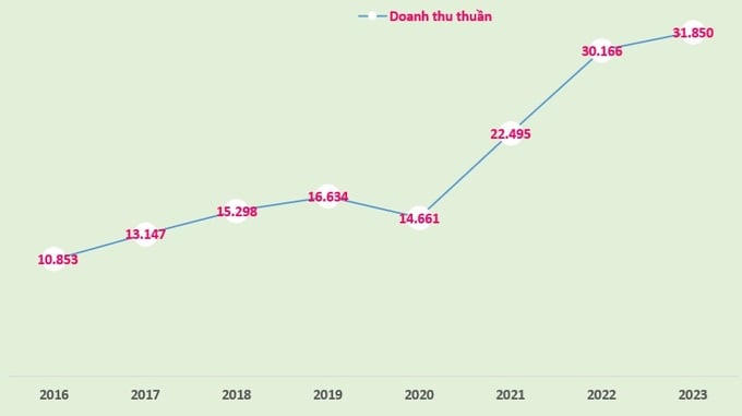 Năm 2023, FPT Long Châu tiếp tục mở rộng khi mở mới 560 cửa hàng, nâng số lượng nhà thuốc phát sinh doanh thu lên đến 1.497 nhà thuốc. Đáng chú ý, doanh thu trung bình/nhà thuốc/tháng vẫn duy trì được mức gần 1,1 tỷ đồng trong cả năm 2023.