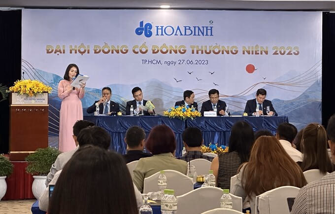 Đại hội đồng cổ đông thường niên 2023 của Hòa Bình có sự xuất hiện của ông Bolat Duisenov, Chủ tịch HĐQT CTCP Xây dựng Coteccons; ông Trần Quang Tuấn, Chủ tịch kiêm Tổng Giám đốc CTCP Xây dựng Central; ông Nguyễn Khắc Đồng, Tổng Giám đốc CTCP Xây dựng An Phong. Đây là đại diện cho những đối tác trong liên minh các nhà thầu Hoa Lư đấu thầu dự án sân bay Long Thành trị giá 35.000 tỷ đồng.