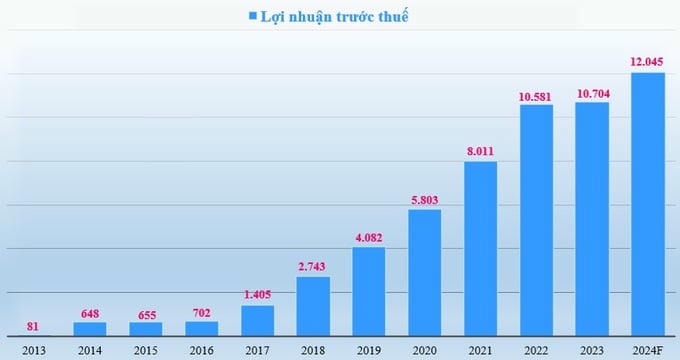 Năm 2024, lợi nhuận trước thuế tăng 13%, đạt 12.045 tỷ đồng
