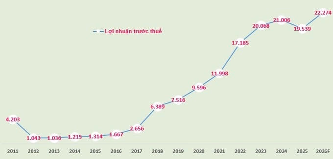 Lợi nhuận trước thuế tăng 14% (+2.735 tỷ đồng) và đạt 22.274 tỷ đồng.