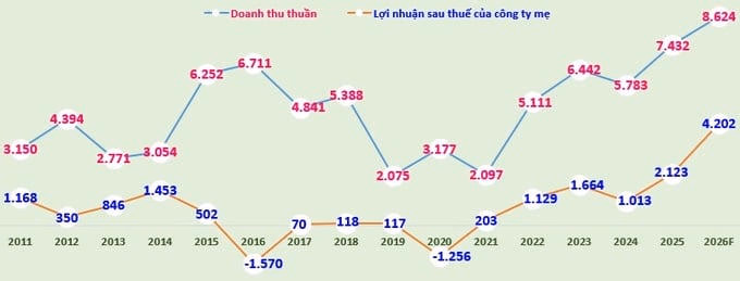 Theo đó, doanh thu thuần đạt 7.432 tỷ đồng và 2.123 tỷ đồng lợi nhuận sau thuế của công ty mẹ, tăng lần lượt 28,5% (+1.649 tỷ đồng) và 109,5% (+1.109 tỷ đồng) so với năm 2024. Lãi cơ bản trên cổ phiếu đạt 1.910 đồng.