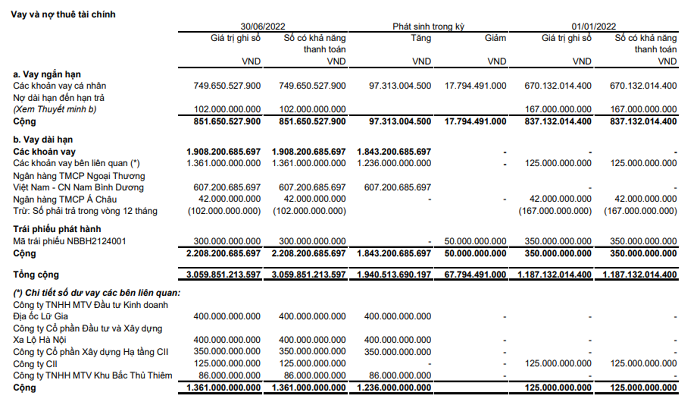 Báo cáo tài chính bán niên của Năm Bảy Bảy cho thấy, công ty này đang có khoản vay tài chính gần 852 tỷ đồng ngắn hạn, tăng 1,8% so với đầu năm 2022.