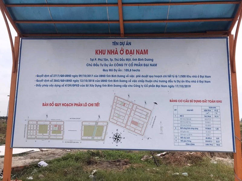 Dự án Khu nhà ở Đại Nam có quy mô 105,8 ha, do Công ty Cổ phần Đại Nam làm chủ đầu tư với tổng vốn đầu tư hơn 2.300 tỷ đồng, dự án được UBND tỉnh Bình Dương phê duyệt quy hoạch chi tiết tỷ lệ 1/500 tại Quyết định số 2717/QĐ-UBND ngày 9/10/2017. Sau đó, ngày 06/3/2018, UBND tỉnh ban hành tờ trình số 841/TTr-UBND đề nghị Thủ tướng Chính phủ và Bộ Xây dựng chấp thuận chủ trương đầu tư dự án Khu nhà ở Đại Nam.