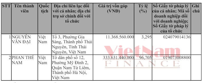 Tháng 4/2024, Công ty TNHH Nam Tiến tiếp tục tăng vốn điều lệ từ mức 165 tỷ đồng lên thành 268 tỷ đồng. Lúc này, tỷ lệ sở hữu của 2 cổ đông nêu trên không thay đổi, với phần vốn góp của Nguyễn Văn Đại là hơn 11,3 tỷ đồng và Phan Thế Nam là 256,6 tỷ đồng.