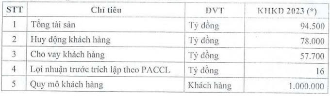 Về kế hoạch kinh doanh 2023, NCB đặt mục tiêu đến cuối năm 2023 tổng tài sản đạt 94.500 tỷ đồng; huy động khách hàng đạt 78.000 tỷ đồng và cho vay khách hàng đạt 57.700 tỷ đồng. Lợi nhuận trước trích lập theo phương án cơ cấu lại đạt 16 tỷ đồng. Quy mô khách hàng mục tiêu năm 2023 là 1 triệu khách hàng.