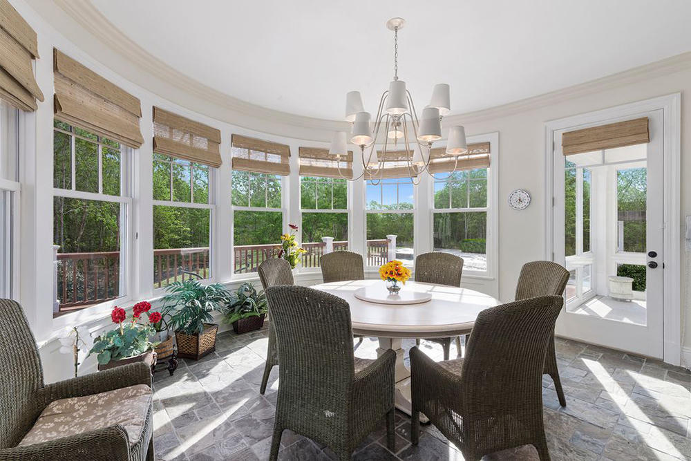 Hiên nhà đầy nắng hướng ra hồ bơi bên ngoài.