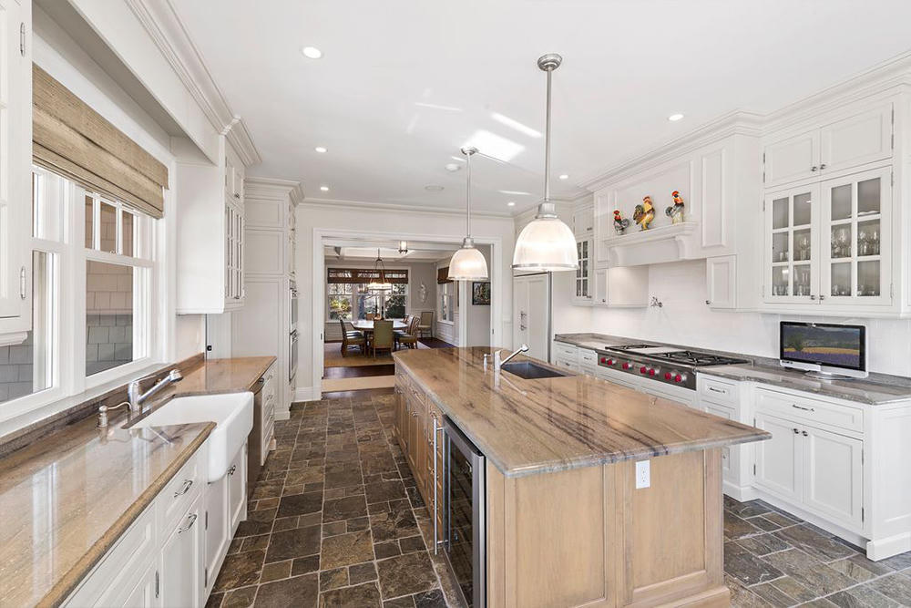 Nhà bếp cao cấp với tông màu trắng chủ đạo cùng những trang thiết bị đắt tiền, đồ nội thất được làm từ gỗ và đá granite.