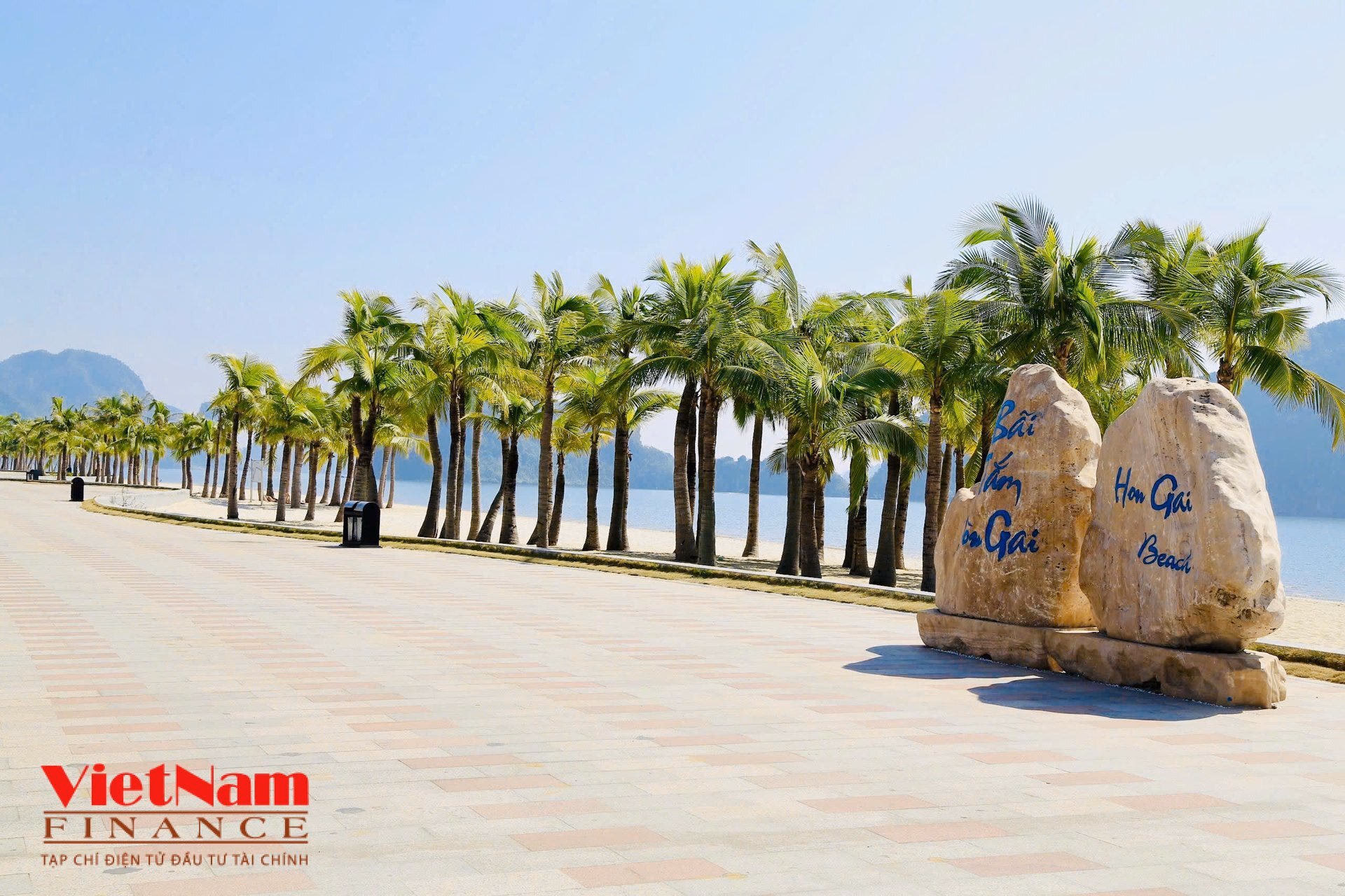 Bãi biển có chiều dài 4km, bao quanh bờ vịnh Hạ Long – di sản thiên nhiên thế giới. Bên cạnh bãi biển là con đường bao biển rộng 41m, gồm 6 làn xe và vỉa hè hai bên.