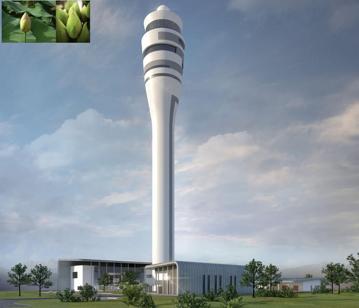 Đài kiểm soát không lưu tại sân bay Long Thành cũng được thiết kế theo ý tưởng hình búp sen, có màu sắc và kết cấu kiến trúc hài hòa với nhà ga hành khách và các công trình xung quanh.