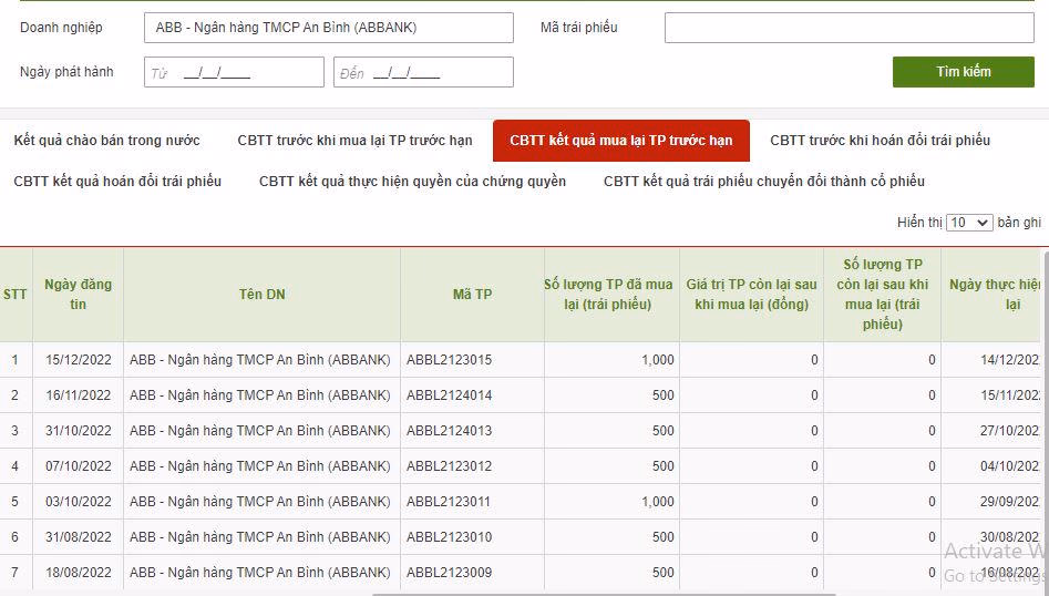Như vậy, từ tháng 8/2022 đến giữa tháng 12/2022, ngân hàng An Bình đã mạnh tay bỏ ra 4.500 tỷ đồng để mua lại trước hạn toàn bộ 7 lô trái phiếu.