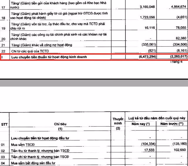 Đáng lưu ý, dòng tiền tại loạt ngân hàng hiện nay cũng đang hao hụt khá nhiều. Dòng tiền được ví như “dòng máu” duy trì tất cả các hoạt động sản xuất - kinh doanh, là yếu tố sống còn của một doanh nghiệp. Dù lợi nhuận có khủng cỡ nào nhưng dòng tiền lại âm cũng ảnh hưởng không nhỏ tới hoạt động kinh doanh, đặc biệt tại lĩnh vực ngân hàng liên quan mật thiết đến hoạt động cho vay.