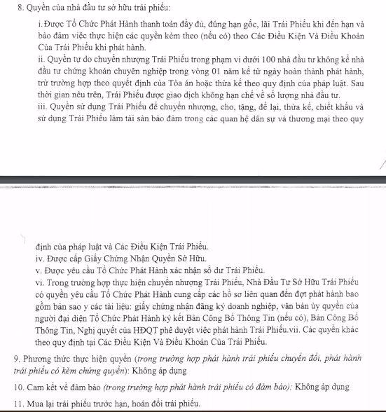 Lưu ý, đây là loại trái phiếu không chuyển đổi, không có tài sản đảm bảo và không kèm chứng quyền.