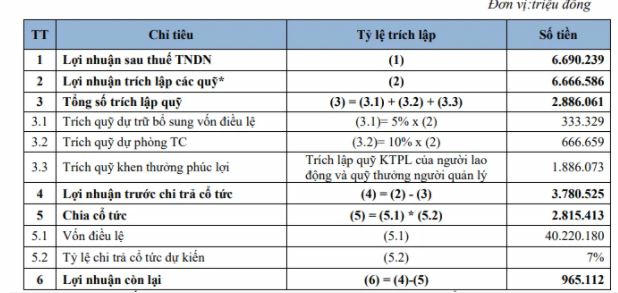 Sau trích lập, lợi nhuận còn lại của BIDV đạt gần 3.781 tỷ đồng. Ngân hàng dự kiến chi 2.815 tỷ đồng để chi trả cổ tức bằng cổ phiếu cho năm 2020, tương ứng tỷ lệ 7%. Sau chia, lợi nhuận giữ lại của ngân hàng là hơn 965 tỷ đồng.
