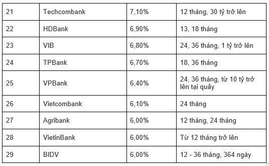 Lãi suất của 29 ngân hàng tháng 8/2020 (Nguồn: Tổng hợp).