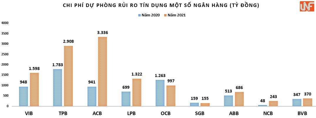 Đơn cử tại ngân hàng LienVietPostBank, nợ xấu nội bảng đến cuối năm 2021 tăng 9,8% lên 2.775 tỷ đồng do nhóm nợ nghi ngờ tăng 192% so với cuối năm 2020. Tỷ lệ nợ xấu trên tổng dư nợ cho vay của LienVietPostBank giảm không đáng kể, khoảng 0,1% so với cuối năm ngoái. LienVietPostBank đã dành hơn 1.322 tỷ đồng trích lập dự phòng rủi ro tín dụng trong năm 2021, cao gấp 1,9 lần cùng kỳ năm 2020.