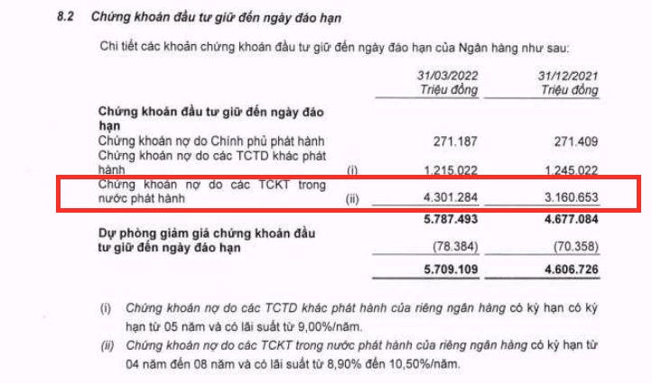 Theo báo cáo tài chính quý 1/2022, tính đến 31/3/2022, ngân hàng MB đang nắm giữ hơn 50.620 tỷ đồng trái phiếu doanh nghiệp, tăng 20% so với đầu năm.