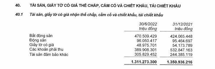 Đáng chú ý, lượng bất động sản thế chấp tại MB ghi nhận hơn 470.509 tỷ đồng, tăng 11% so với đầu năm. Trong khi đó, lượng động sản thế chấp chỉ ở mức 96.050 tỷ đồng; giấy tờ có giá gần 48.976 tỷ đồng; tài sản đảm bảo khác gần 306.000 tỷ đồng.