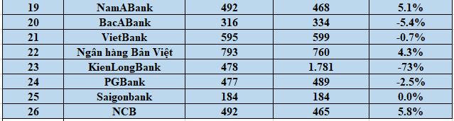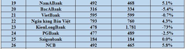 Chỉ có 11 ngân hàng trong nhóm khảo sát ghi nhận nợ nhóm 5 giảm gồm Vietinbank, VPBank, Techcombank, SHB, Sacombank, Seabank, ABBank, BacABank, VietBank, KienLongBank, PGBank.