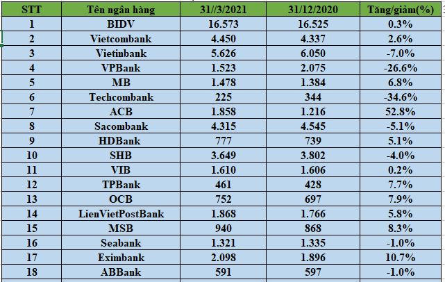 Ngân hàng nào có nợ nhóm 5 tăng mạnh nhất trong quý 1/2021?