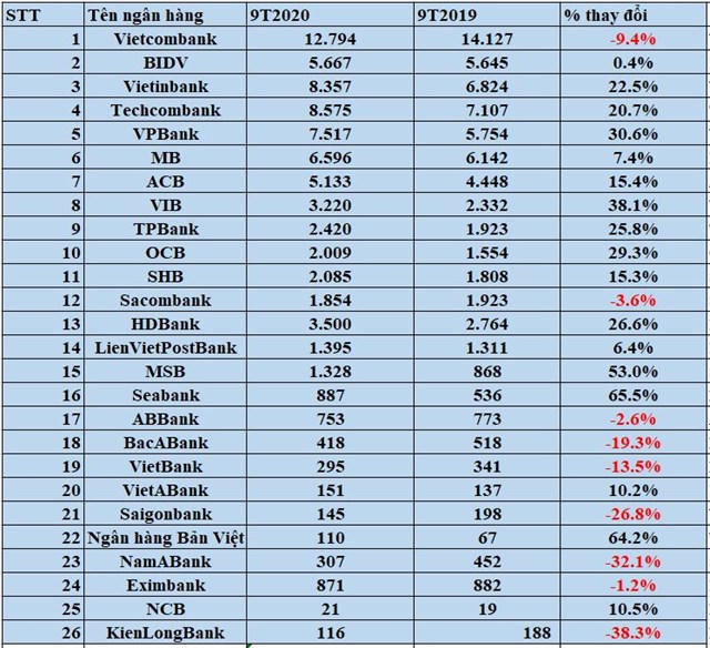 Trong khi tỷ lệ CIR 9 tháng đầu năm tại một số nhà băng tăng nhẹ thì có nhiều ngân hàng khác ghi nhận tăng mạnh. Chẳng hạn như SCB, tỷ lệ CIR tăng mạnh so với cùng kỳ năm 2019, tăng từ 42% lên 54%. CIR tại SCB tăng mạnh do doanh thu sụt giảm, lợi nhuận trước thuế 9 tháng đầu năm tại Ngân hàng chỉ ở mức hơn 113 tỷ đồng, giảm 56% so với cùng kỳ.