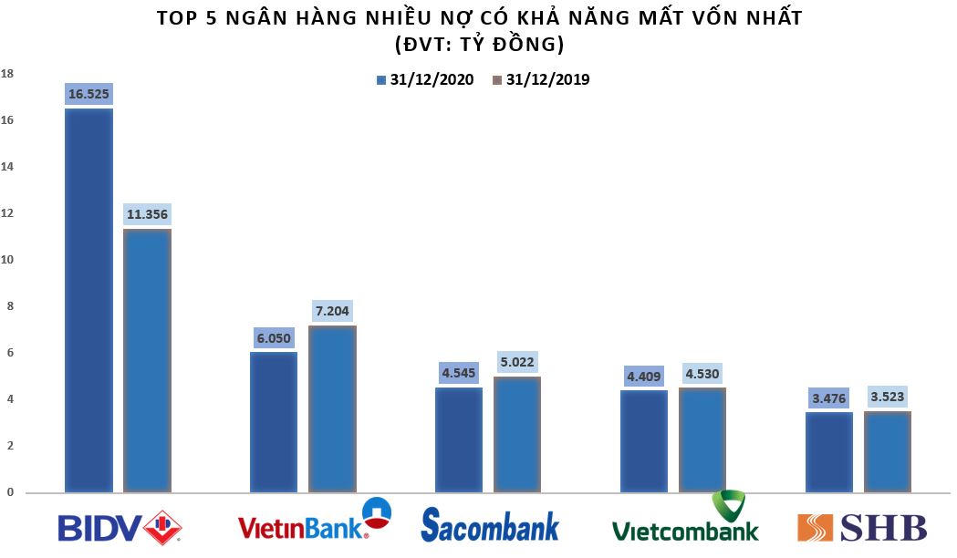 Ngân hàng nào nhiều nợ có khả năng mất vốn nhất năm 2020?