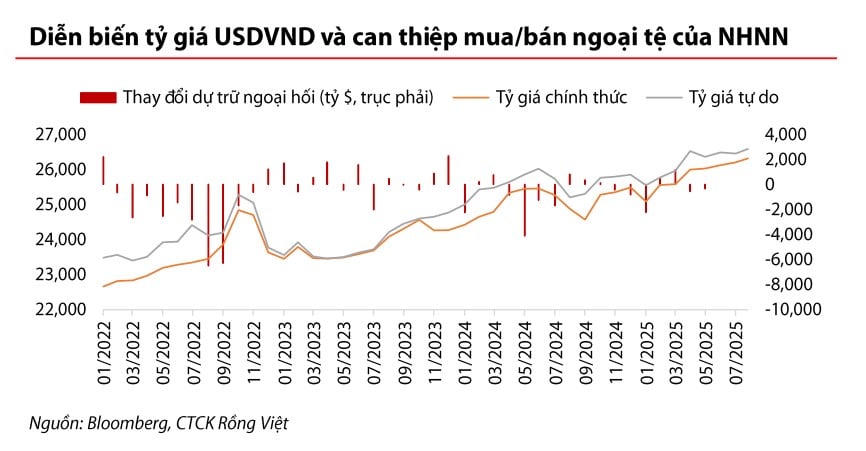 Trong báo cáo mới đây, các chuyên gia của Chứng khoán Rồng Việt (VDSC) nhận định, động thái này có ý nghĩa định hướng về điểm neo tỷ giá và thăm dò nhu cầu USD khi NHNN thực tế chưa can thiệp trực tiếp thông qua bán ngoại tệ giao ngay.