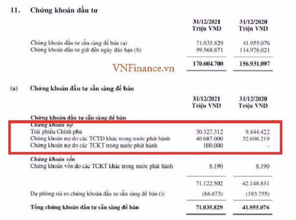 Ngân hàng Vietcombank là một trong những nhà băng ghi nhận lượng trái phiếu doanh nghiệp nắm giữ tăng mạnh nhất với mức tăng hơn 2 lần, từ 5.335 tỷ đồng cuối năm 2020 lên 11.929 tỷ đồng khi kết thúc năm 2021.