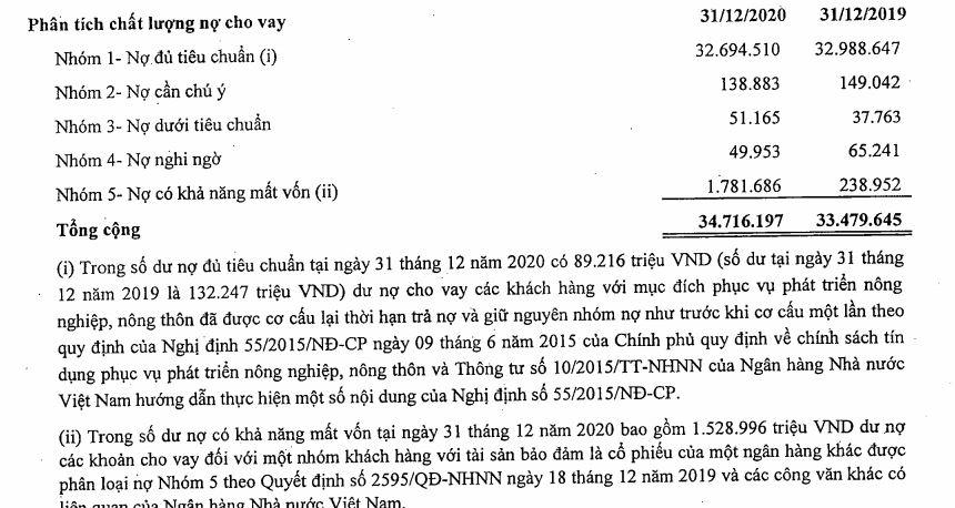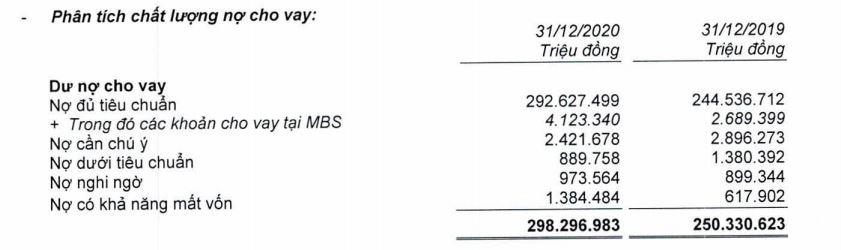 Tuy nhiên, nợ nhóm 5 tại MB tăng mạnh. Cụ thể, tính đến 31/12/2020, tổng nợ xấu của MB tăng 12% so với đầu năm, ghi nhận gần 3.248 tỷ đồng. Đáng chú ý là nợ nhóm 5 gấp 2,2 lần đầu năm, chiếm đến 1.384 tỷ đồng.