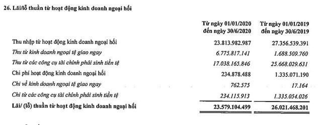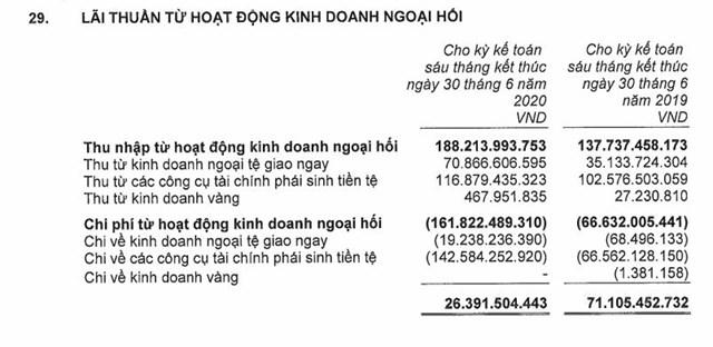 Kết thúc 6 tháng đầu năm, kinh doanh ngoại hối chỉ còn mang về cho ngân hàng 44 tỷ đồng, giảm tới 75% so với con số 175 tỷ đồng cùng kỳ năm 2019.