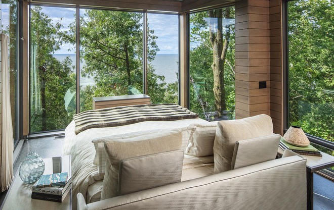 Sử dụng đồ nội thất đơn giản với màu sắc trung tính khiến phòng ngủ có diện tích hạn chế này trông rất hiện đại và chẳng bao giờ lỗi mốt được.