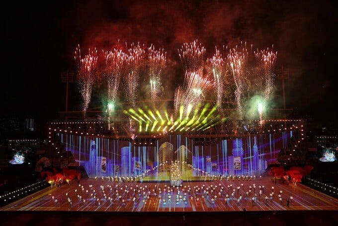 Trên diện tích khổng lồ hơn 6.000m2, công nghệ mapping tiên tiến phủ trọn mặt sàn biến không gian sân vận động Mỹ Đình thành một sân khấu sống động chưa từng có, mang đến những trải nghiệm đỉnh cao về công nghệ, nghệ thuật, triển lãm, đồng diễn và diễu hành, khơi dậy cảm xúc mãnh liệt nơi khán giả.