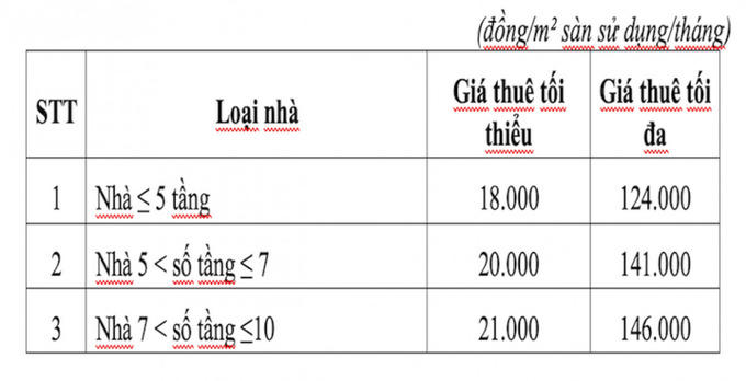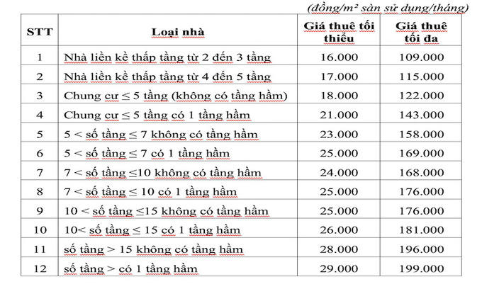 Khung giá cho thuê nhà lưu trú công nhân được tính như sau:
