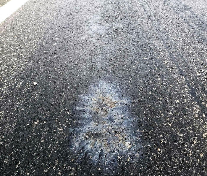 Kiểm tra thực địa nhận thấy mặt đường đã bị đổ hóa chất màu đen, có xuất hiện một lớp nhựa trên cùng đã bị phân hủy.