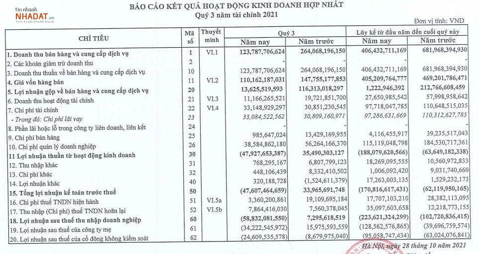 Lũy kế 9 tháng đầu năm 2021, CEO ghi nhận doanh thu thuần giảm còn 406 tỷ đồng (giảm 40%) và lỗ ròng gần 129 tỷ đồng. Đồng thời, dòng tiền kinh doanh 9 tháng âm hơn 144 tỷ đồng, trong khi cùng kỳ dương 112 tỷ đồng.