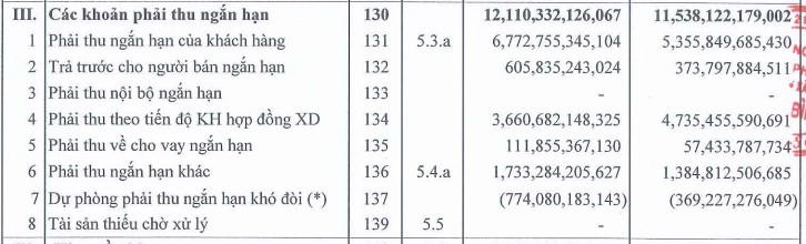 Tương tự như HBC, Coteccons cũng lâm vào tình cảnh tương tự khi các khoản phải thu ngắn hạn của khách hàng đã tăng thêm 30% so với đầu năm lên 11.231 tỷ đồng. Trong đó, khoản phải thu ngắn hạn của khách hàng đạt 10.926 tỷ đồng, dự phòng phải thu ngắn hạn khó đòi tăng cao so với đầu năm là 1.049 tỷ đồng.