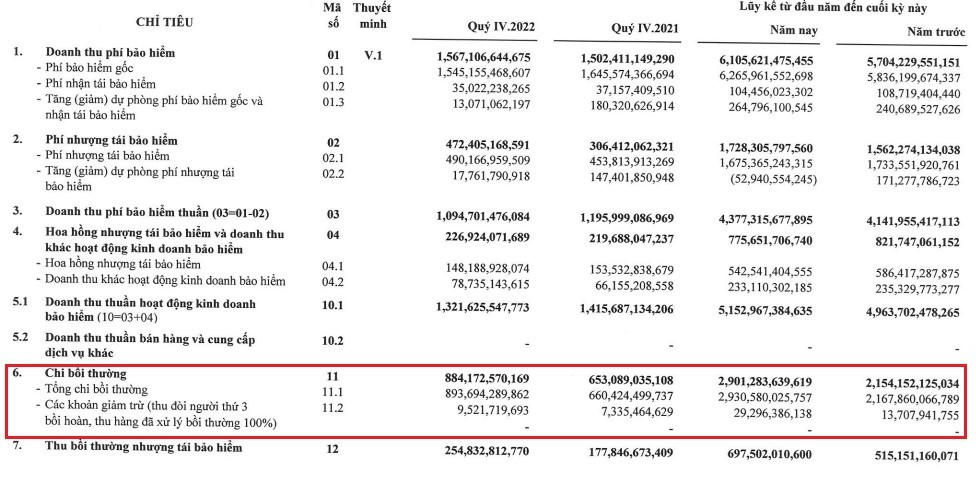 Ngoài ra, lợi nhuận giảm còn do tỷ lệ bồi thường tăng trở lại khi các hoạt động kinh tế và xã hội được bình thường hóa.