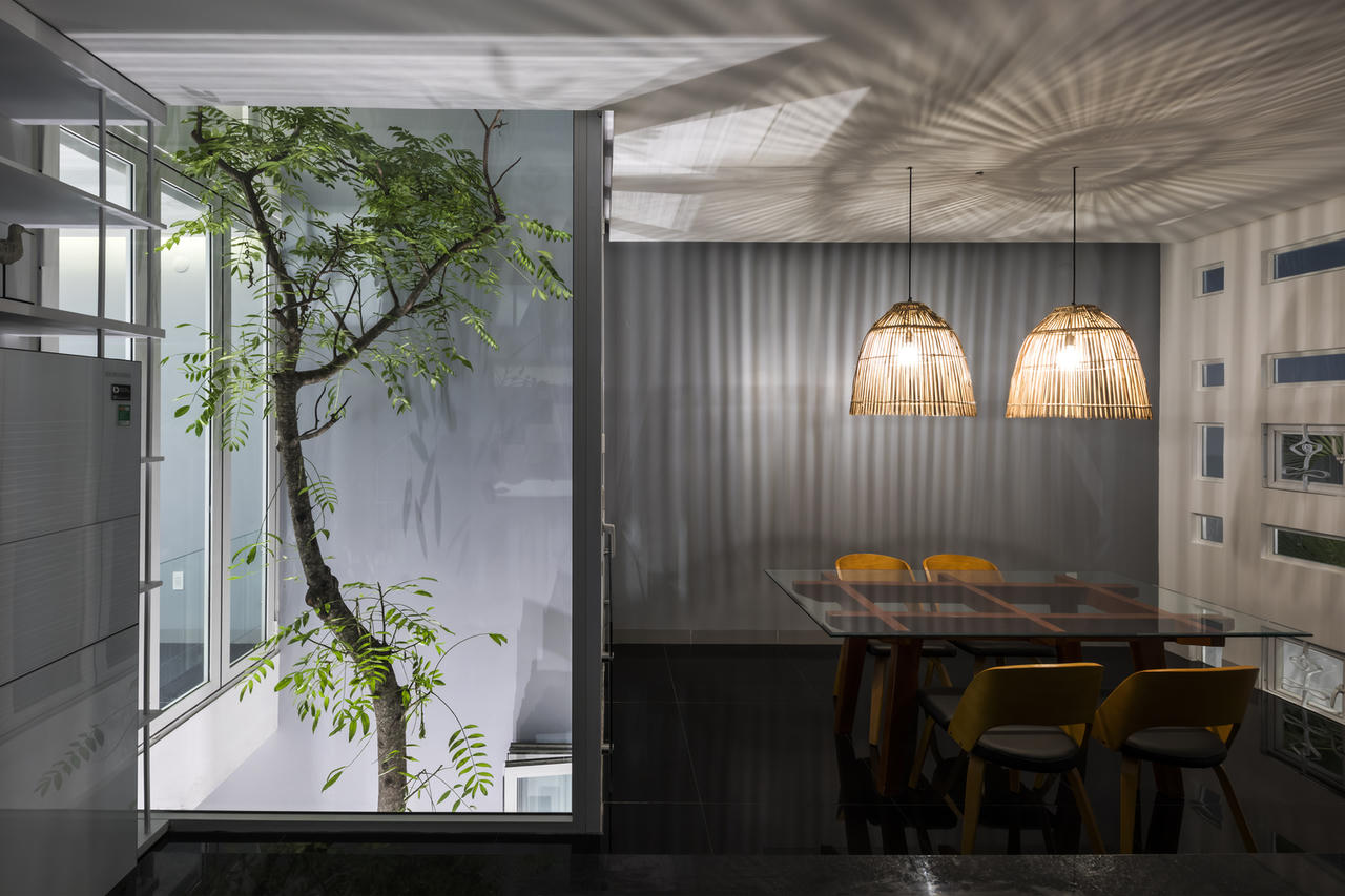 Thiết kế ngôi nhà có những khoảng lùi ở phía trước, sau và bên hông. Chủ nhà sẽ trồng cây ở những khoảng đệm này, làm tăng khoảng xanh.