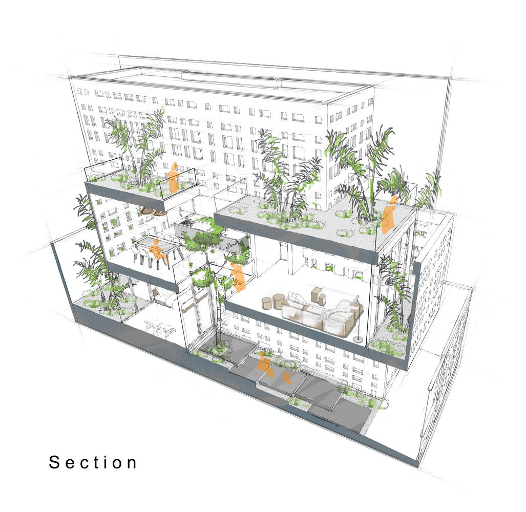 Cây xanh có mặt ở khắp mọi nơi trong khu nhà.