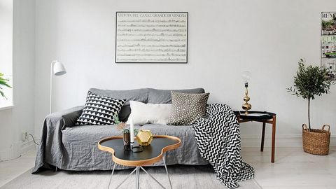 Không cần quá cầu kỳ, phòng khách chỉ cần có một chiếc sofa dài là đủ để đón tiếp khách và sinh hoạt hàng ngày. Ghế sofa kết hợp với chiếc bàn nhỏ đặt kế bên là vừa đủ để phòng khách trở nên sang trọng và lịch sự hơn. Chủ nhân cũng rất khéo léo trong việc kết hợp màu xám của ghế sofa cùng màu xám nhạt của chiếc thảm. Như thế, sẽ giúp không gian phòng trở nên thoáng hơn.