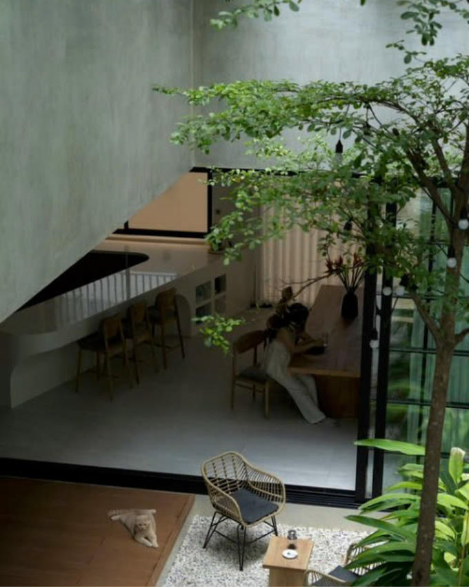 Trong ngôi nhà, cây cỏ trở thành một yếu tố không thể thiếu. Ở bất kỳ góc nào, gia chủ cũng dễ dàng cảm nhận được sự hiện diện của thiên nhiên.