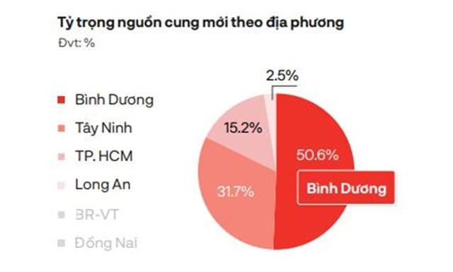 Theo báo cáo của DKRA, nguồn cung và lượng tiêu thụ mới trong T4/2024 duy trì ở mức thấp, tỷ lệ giảm lần lượt là 71% và 97% so với cùng kỳ năm 2023. Tỷ lệ hấp thụ chung toàn thị trường ghi nhận mức 51%. Trong đó, Bình Dương lần lượt chiếm 80% tổng nguồn cung, số dự án tại Bình Dương chiếm hơn 50% tỷ trọng nguồn cung thị trường và 71% lượng tiêu thụ mới, phần lớn đến từ một dự án mở bán tại TP Dĩ An.