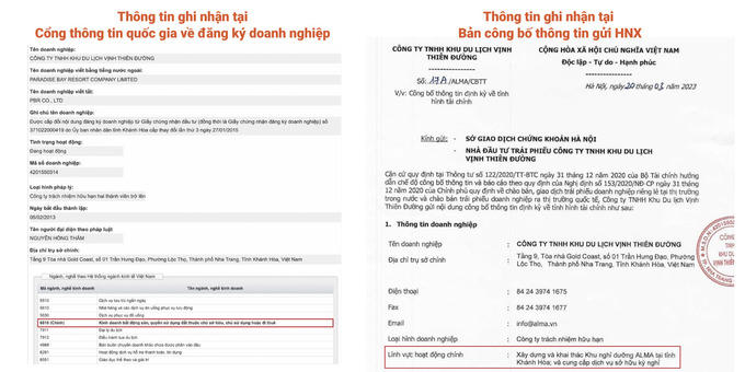 Theo thông tin từ Cổng thông tin quốc gia về đăng ký doanh nghiệp, Vịnh Thiên Đường có ngành nghề kinh doanh chính là kinh doanh bất động sản, quyền sử dụng đất thuộc chủ sở hữu, chủ sử dụng hoặc đi thuê. Tuy nhiên, theo bản công bố thông tin mà doanh nghiệp này gửi Sở Giao dịch Chứng khoán Hà Nội (HNX), lĩnh vực hoạt động chính được kê khai là xây dựng và khai thác Khu nghỉ dưỡng Alma tại tỉnh Khánh Hòa và cung cấp dịch vụ sở hữu kỳ nghỉ.