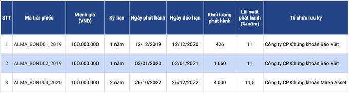 Đáng chú ý, ngoài nguồn tiền từ công ty mẹ, cuối năm 2019, Vịnh Thiên Đường còn huy động 42,6 tỷ đồng qua kênh trái phiếu. Lô trái phiếu ALMA_BOND01_2019 được phát hành ngày 12/12/2019 với mệnh giá 100 triệu đồng/trái phiếu, có kỳ hạn 1 năm, lãi suất 11%/năm.