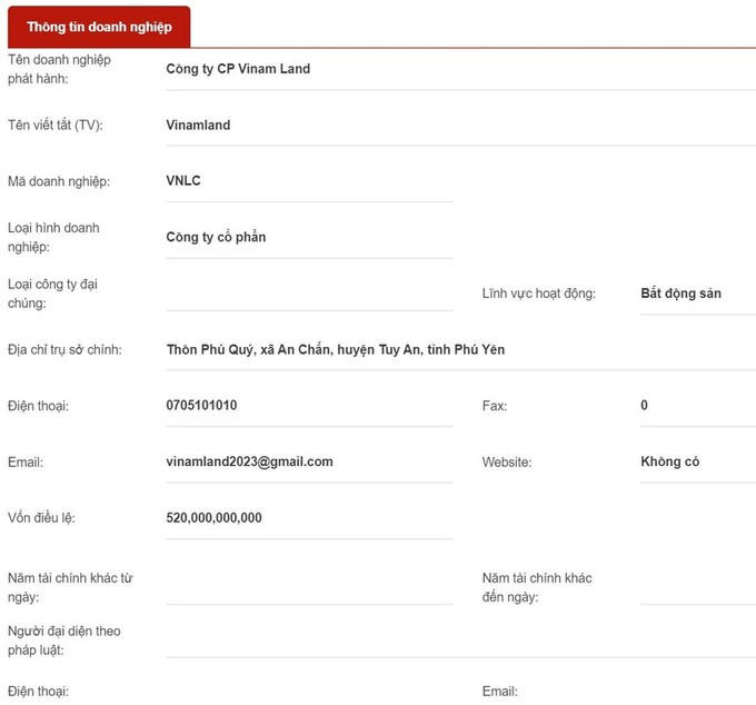 Theo Báo Người Lao Động, ông Nguyễn Quốc Khanh, Chủ tịch UBND xã An Chấn, huyện Tuy An, tỉnh Phú Yên, xác nhận trên địa bàn xã này không có công ty nào tên Vinam Land.