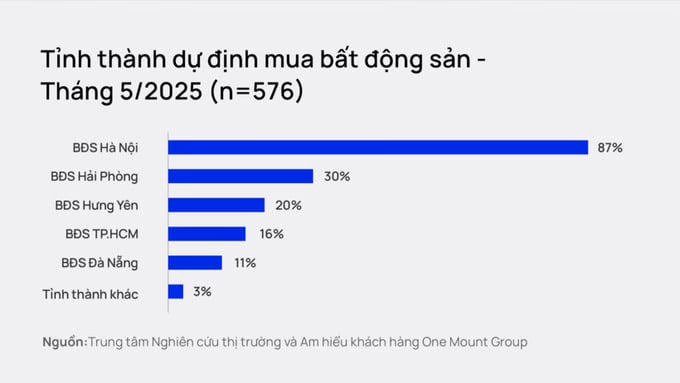 Không chỉ giới hạn ở địa bàn Hà Nội, người mua hiện nay đang mở rộng mối quan tâm tới các thị trường vệ tinh và khu vực phía Nam. Theo khảo sát, có tới 30% khách hàng hướng tới Hải Phòng, 20% quan tâm đến Hưng Yên và 16% cân nhắc cả thị trường TP. Hồ Chí Minh. Xu hướng này phản ánh rõ sự dịch chuyển trong tư duy đầu tư – người mua ngày càng chú trọng hơn đến yếu tố hạ tầng kết nối, mặt bằng giá hợp lý và tiềm năng sinh lời, thay vì chỉ tập trung vào khu vực trung tâm Thủ đô như trước.