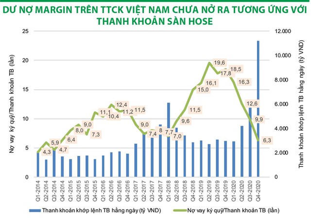 Từ cuối năm 2020, dòng tiền trên thị trường chứng khoán Việt Nam luôn được trì ở mức cao khiến dòng tiền cho vay ký quỹ (margin) của nhiều công ty chứng khoán cũng tăng mạnh, thậm chí có đơn vị đã chạm tới giới hạn.