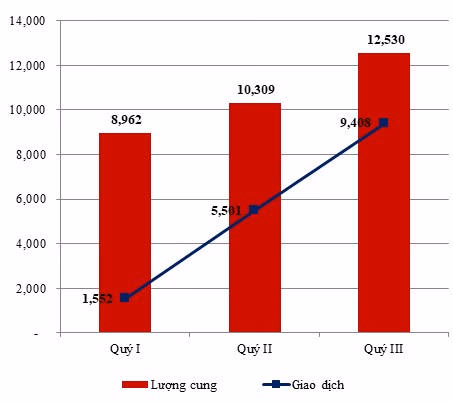 Như vậy lượng cung mới chào bán của quý III/2020 có những dấu hiệu tích cực hơn so với Quý I và Quý II/2020: tăng 1,21% so với Quý I và 1,2 lần so với Quý II. Lượng giao dịch của các sản phẩm mới chào bán của Quý III cũng tăng khoảng 3,5 lần so với Quý I và 1,43 lần so với Quý II/2020.