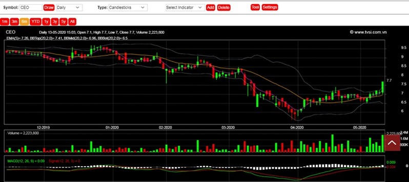 Trên thị trường chứng khoán, ngày 13/5, cổ phiếu CEO đang ở mức giá 7.700 đồng/cp. Mặc dù 1 tuần gần đây, cổ phiếu CEO đang có nhiều phiên tăng liên tiếp, thế nhưng cổ phiếu tập đoàn này đã mất 10% giá trị trong 3 tháng và mất 17% giá trị trong 6 tháng.